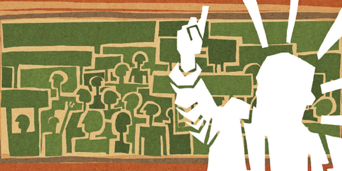 La artesanía senderista muestra toda la fuerza de la doctrina y del iluminado. La fortaleza de Guzmán, en estas representaciones, era haber resuelto todos los misterios de la vida y extirpado la duda del universo, para que los correligionarios se entregasen a la verdad revolucionaria sin reparos. En toda esta artesanía, Guzmán es retratado como un maestro, con un libro en la mano o empuñando una bandera, dando charlas en el aula o al aire libre. Jamás porta un arma. No en vano los senderistas lo llamaban “pensamiento guía”: lo suyo era señalar el camino de la lucha armada (¿el sendero luminoso?) y teorizar las condiciones revolucionarias. Y la biblioteca confirma que, más allá de su representación magnificada y de la sangriente lucha en la que embarcó a miles de peruanos, su oficio era, efectivamente, el de profesor. Con esto no intento victimizarlo ni, menos aún, disminuirle su calidad de criminal mayor. Hago alusión a su oficio.